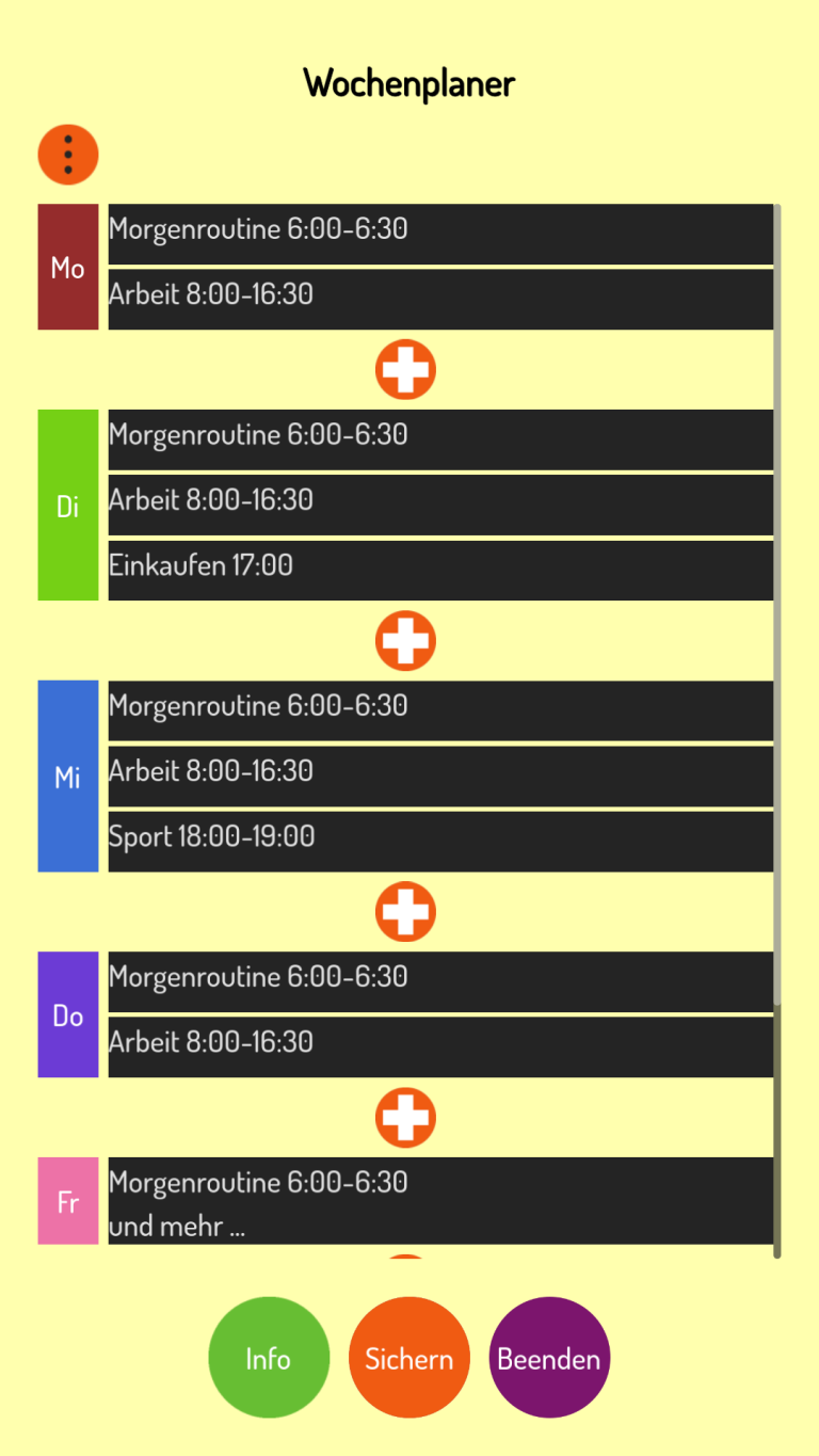 Plane deine Woche mit dem Wochenplaner. Behalte deine wichtigsten/wiederkehrenden Termine im Blick.