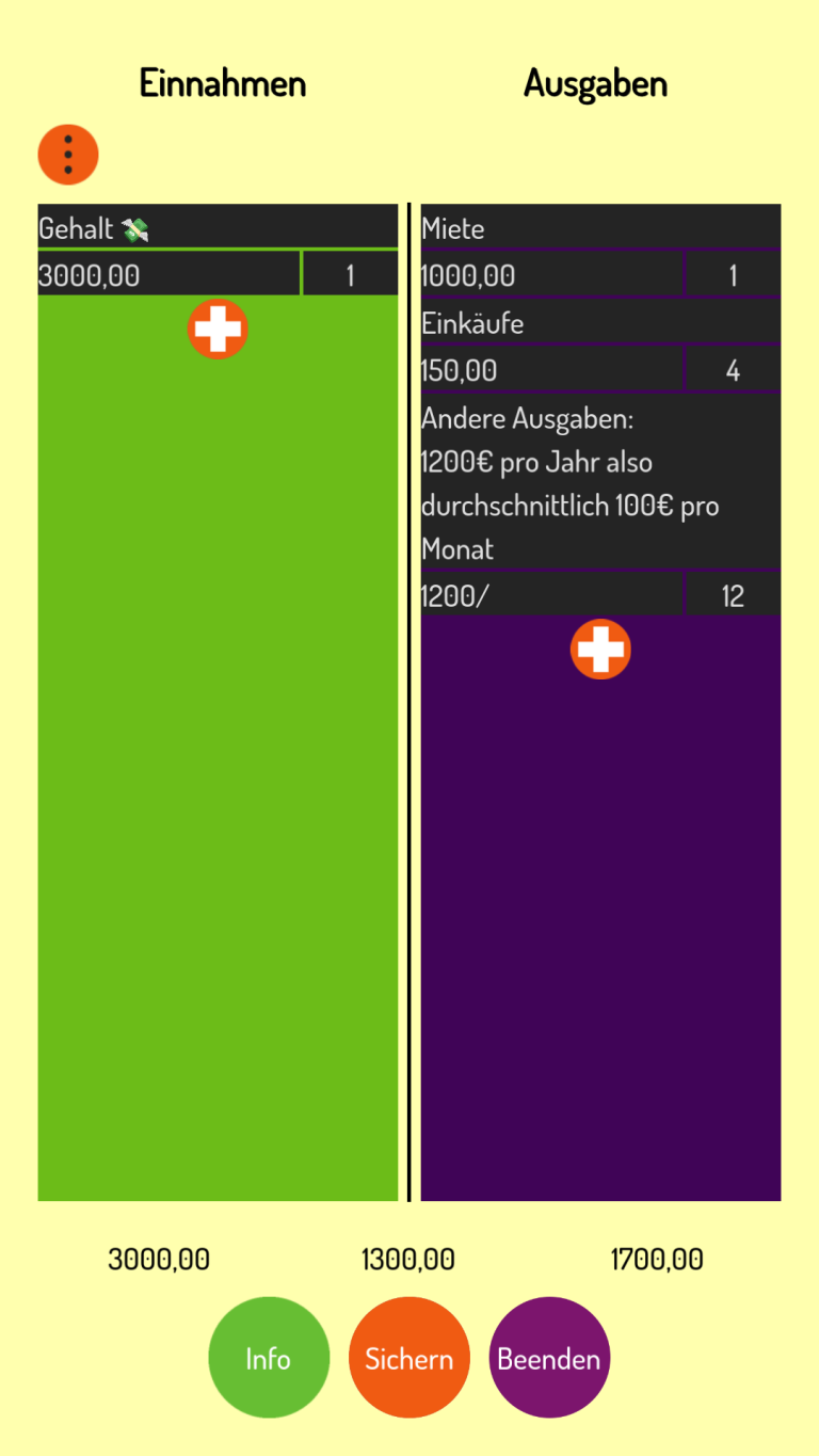 Für Einnahmen oder Ausgaben, welche nicht monatlich auftreten, gibt es die Möglichkeit der Durchschnittsberechnung.